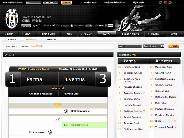 69分。攻撃が止まる要因と化したアマウリに代えてデル・ピエロを投入。2トップにトレゼゲとアレ、その後ろに右からサリハミジッチ、ジエゴ、ジョビンコ。