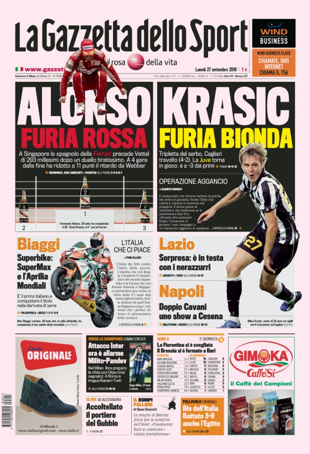 [炎のユベントス]……まるで勝利を祝うかのような10/1のガゼッタ1面。