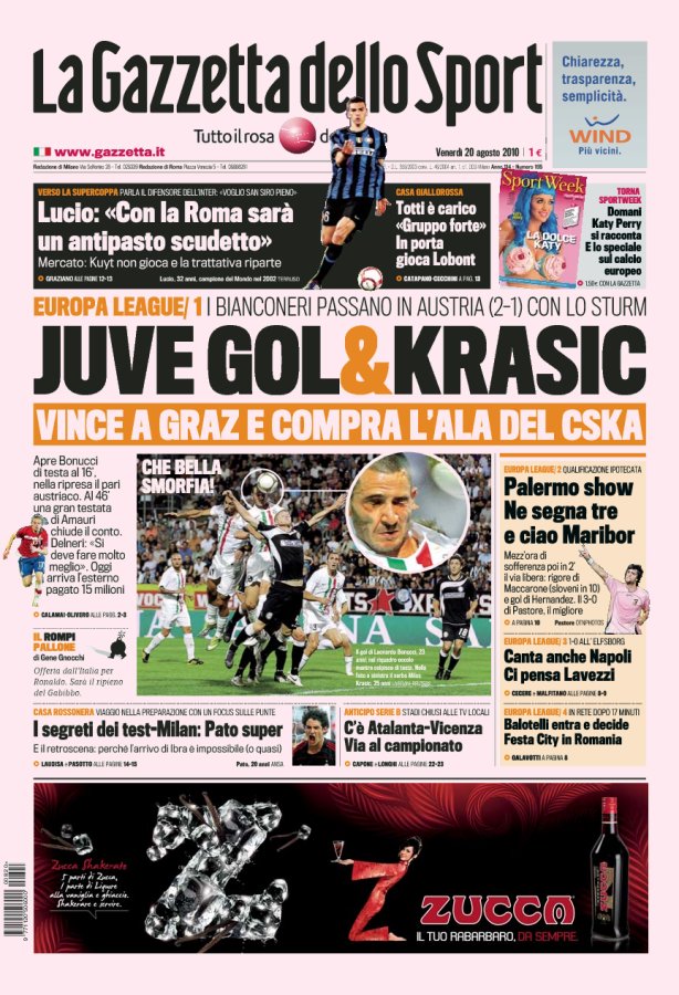 EL予選プレーオフの1stレグ。オーストリアはグラーツに乗り込んだデル・ネーリ・ユベントスは15分にボヌッチのゴールで先制。82分にゴードンのゴールで同点に追いつかれたものの、試合終了直前の89分、アマウリのゴールで逆転勝利をおさめています。
